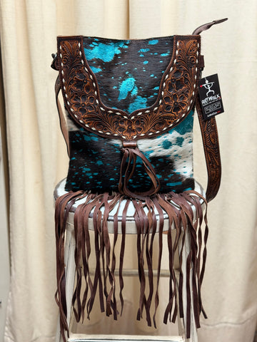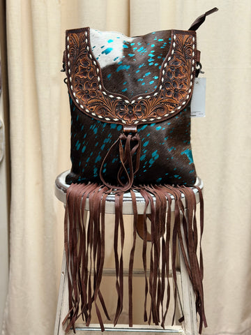 Unique hide pattern with turquoise accents (each bag will vary slightly)